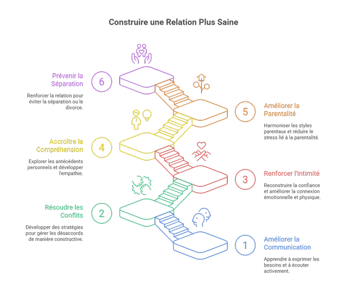 Parfois, un travail individuel parallèle aide à mieux comprendre ses propres émotions, besoins ou réactions, ce qui soutient ensuite le travail de couple.